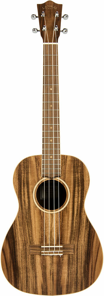The Acacia Solid Top ukulele by Lanikai delivers dynamic new features such as a wider nut for player comfort, select figured woods, open back tuners, wood marquetry, NuBone XB nut and saddle, D'Addario strings, cutaway models with Fishman Kula preamp, satin finish and a padded gig bag.
