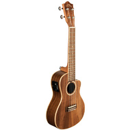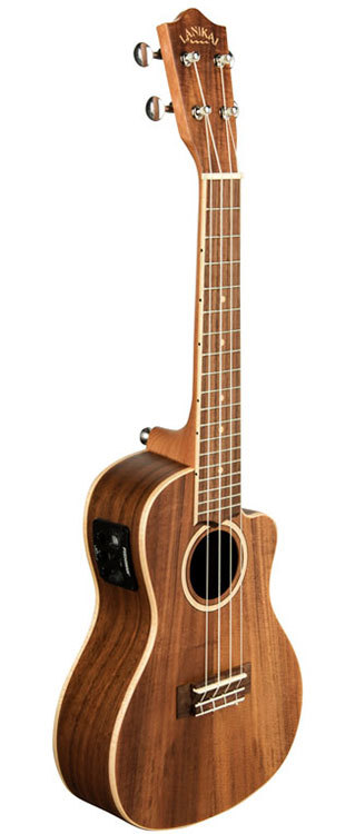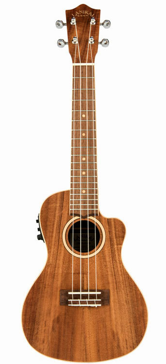 The Acacia Solid Top ukulele by Lanikai delivers dynamic new features such as a wider nut for player comfort, select figured woods, open back tuners, wood marquetry, NuBone XB nut and saddle, D'Addario strings, cutaway models with Fishman Kula preamp, satin finish and a padded gig bag.