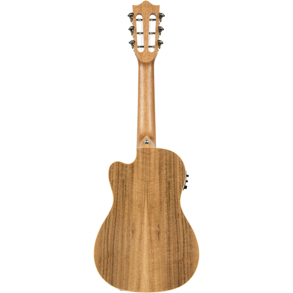 A Lanikai Acacia Solid Top Acacia cutaway electric guitelele provides a unique comfortable feel for guitarists wanting to venture into the tone of ukulele or ukulele players looking to add a few strings to the mix.