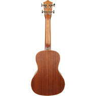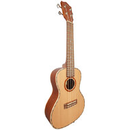 A Solid Cedar top concert ukulele with Mahogany back and sides has maple binding with wood purfling, a wider nut for player comfort, select wood, Grover open back tuners, NuBone XB nut and saddle, D'Addario strings, satin finish and a deluxe 10mm padded gig bag.