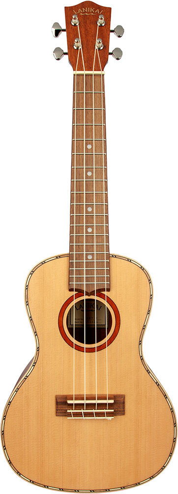 A Solid Cedar top gives these Lanikai ukuleles a pure and true tone from the pluck of individual strings to flourished chordal strums. The result is a musical balance where no tone out-shadows the others.