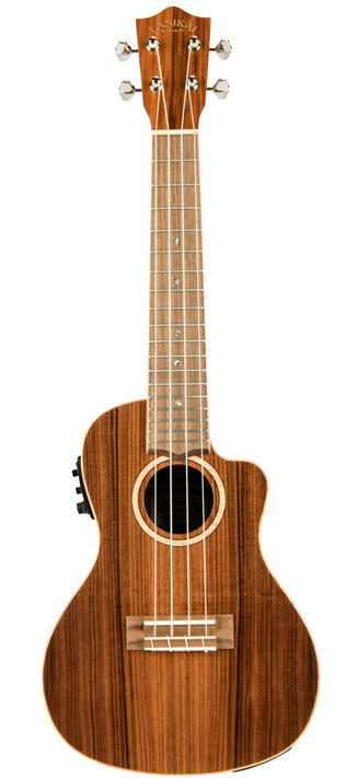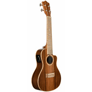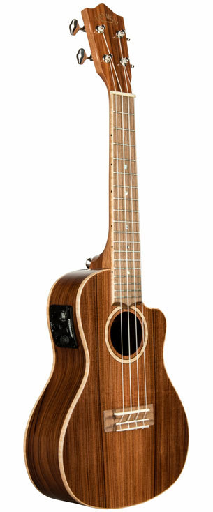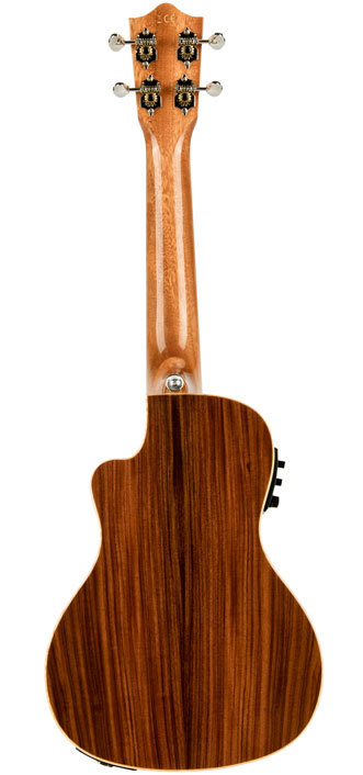 The ALL SOLID Morado ukulele by Lanikai delivers dynamic new features such as a wider nut for player comfort, select figured wood, open back tuners, wood marquetry, NuBone XB nut and saddle, D'Addario strings, cutaway electric with Fishman Kula preamp and tuner, glossy finish and a foam case.