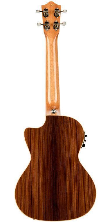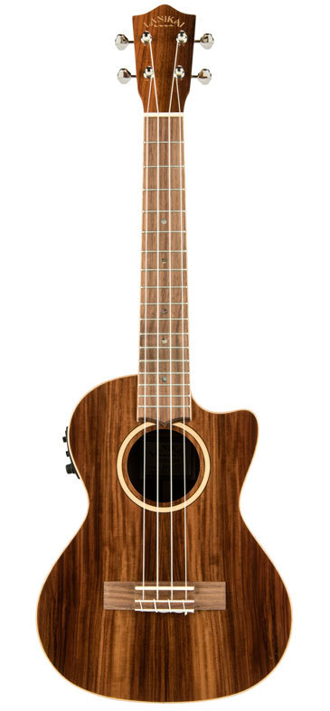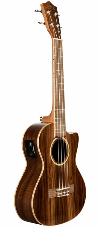 The ALL SOLID Morado ukulele by Lanikai delivers dynamic new features such as a wider nut for player comfort, select figured wood, open back tuners, wood marquetry, NuBone XB nut and saddle, D'Addario strings, cutaway electric with Fishman Kula preamp and tuner, glossy finish and a foam case.