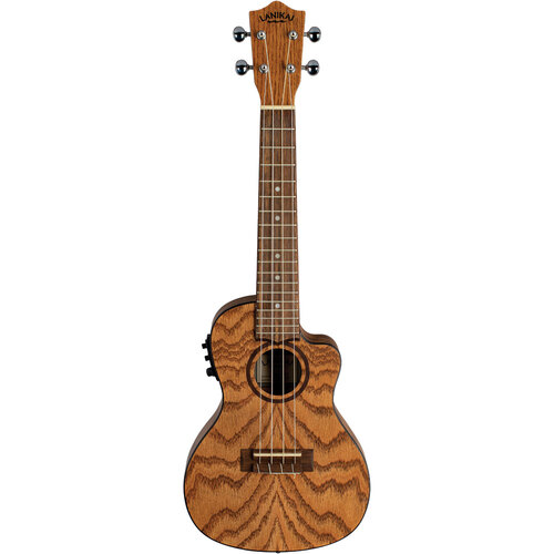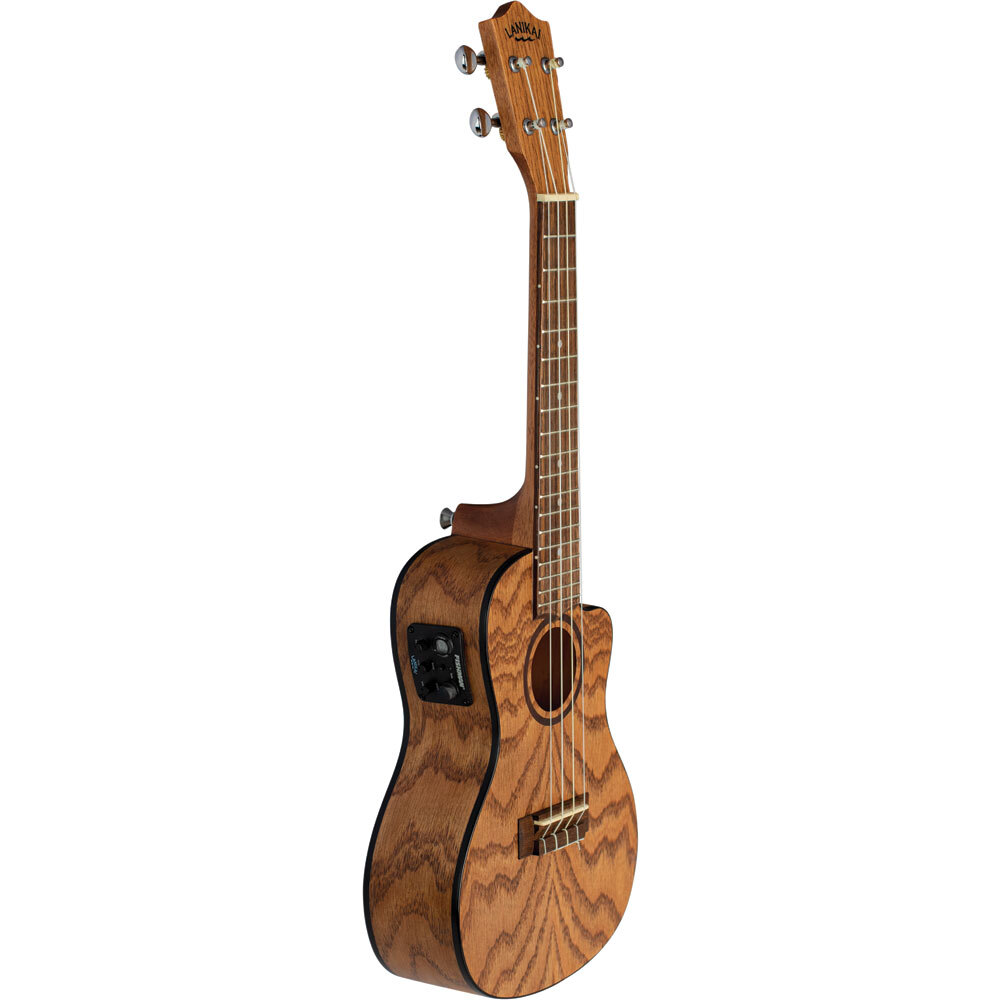 A Lanikai Oak concert cutaway electric ukulele has many beneficial features including a wider nut for player comfort, select wood, open back tuners, NuBone XB nut and saddle, D™Addario strings, a Fishman Kula preamp and tuner, satin finish, a padded gig bag. These ukes have a bright crisp tone with comfortable playability and striking looks.