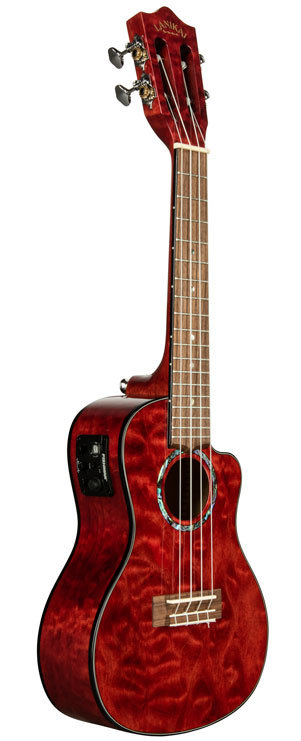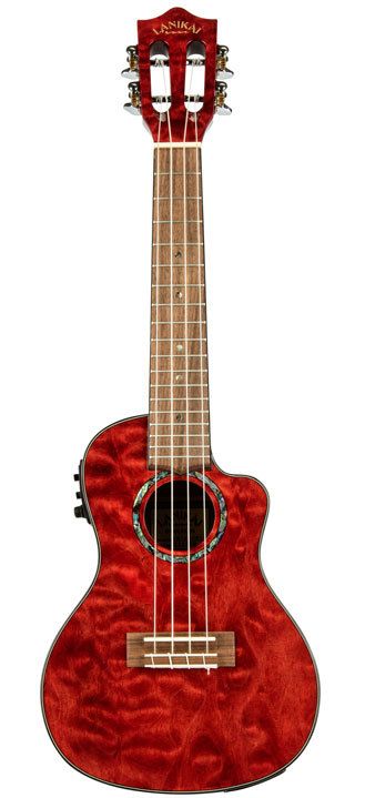 - Glossy stained quilted maple ukuleles add a bit of color - red (sun), natural (sand) and blue (surf) with pickup - ideal for stage or recording