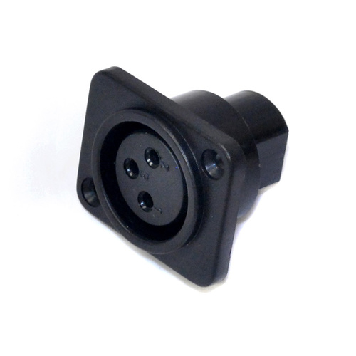 Leem 3-Pin Female XLR Panel Mount Connector with Straight PC Mount Pins. This Connector has a Black Molded Thermoplastic Housing.