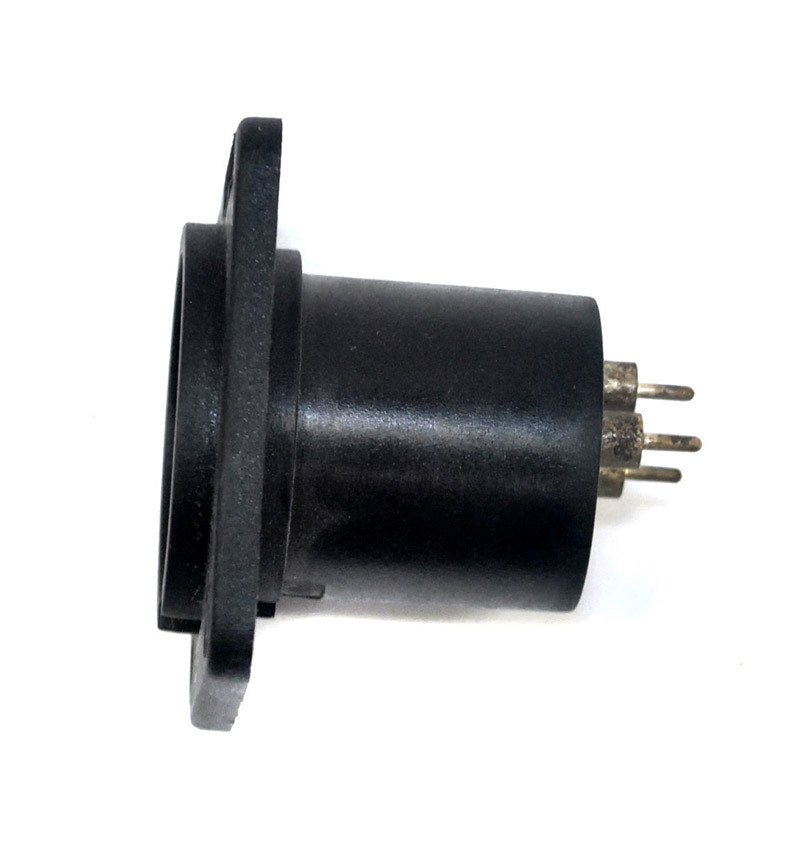Leem 3-Pin Male XLR Panel Mount Connector with Straight PC Mount Pins. This Connector has a Black Molded Thermoplastic Housing.