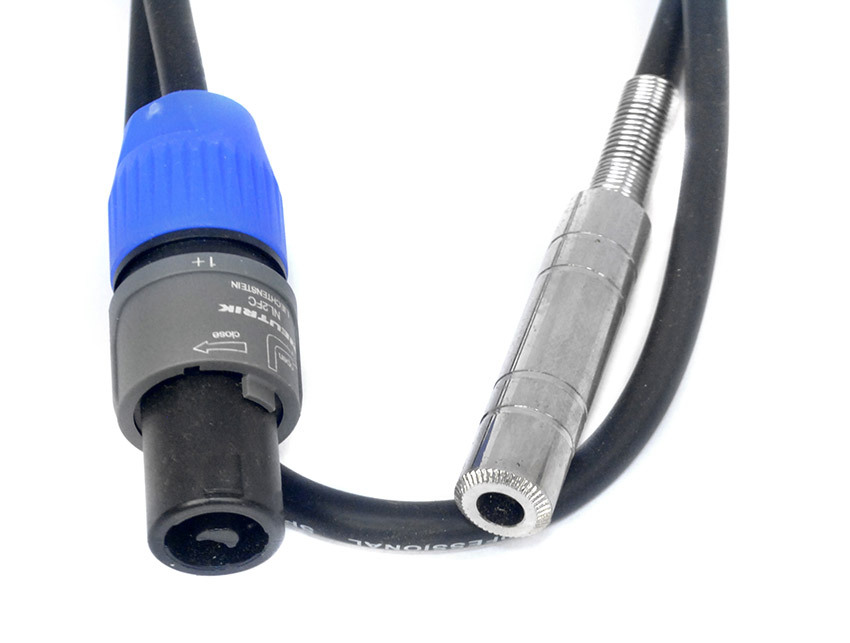 This cable is designed to adapt a speaker cable with a phone plug to a speaker with a speakON input. It is ideal for use in touring and other live-sound applications. Intended for high-current applications only, not line level signals.