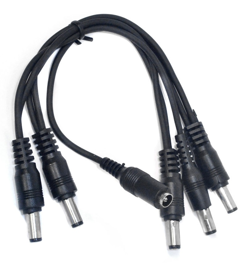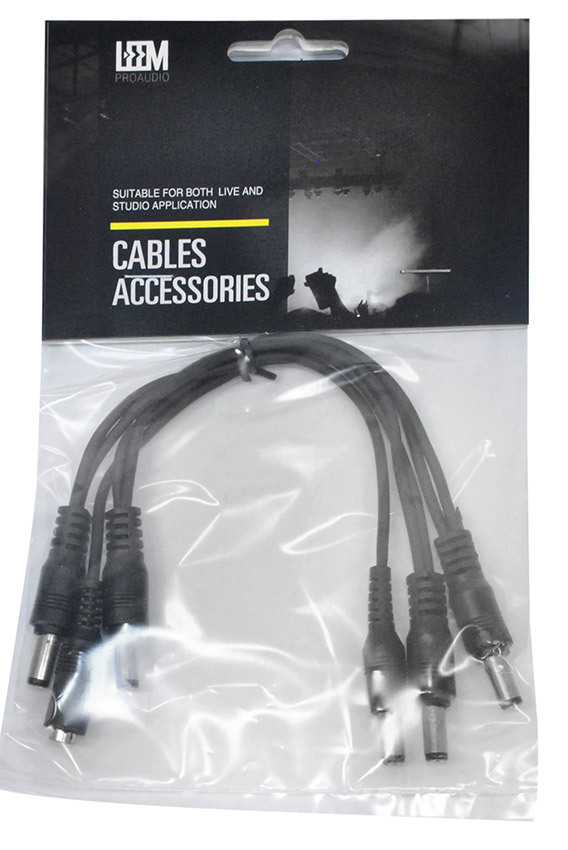 The Leem ADC5 Daisy Chain allows you to power up to 5 effects pedals at once from a single power supply output. Each cable has a straight plug end.