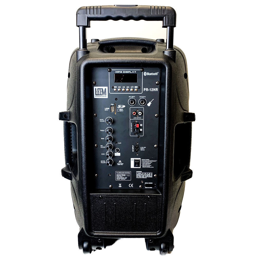The Leem PR-12HR comes with two wireless microphones and is a great option for anyone looking for a portable PA solution on wheels. It's rechargeable, stylish and heavily featured.