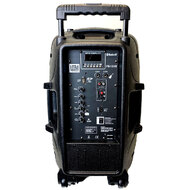 This powerful 120-watt portable 12" speaker has the ability to play music from a USB flash drive, SD card or via Bluetooth. There are linear, instrumental, microphone and AUX inputs, 2-band equalizer for frequency adjustment, and an echo effect with level control for vocal performances.