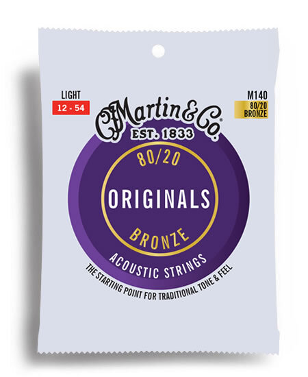 Martin's original M140 light gauge strings, with 80/20 composition, are ideally suited for players who love deep, rich bass tones and clear, bright trebles. Providing brilliance and clarity, Martin M140s are perfect for daily use and all playing styles.
