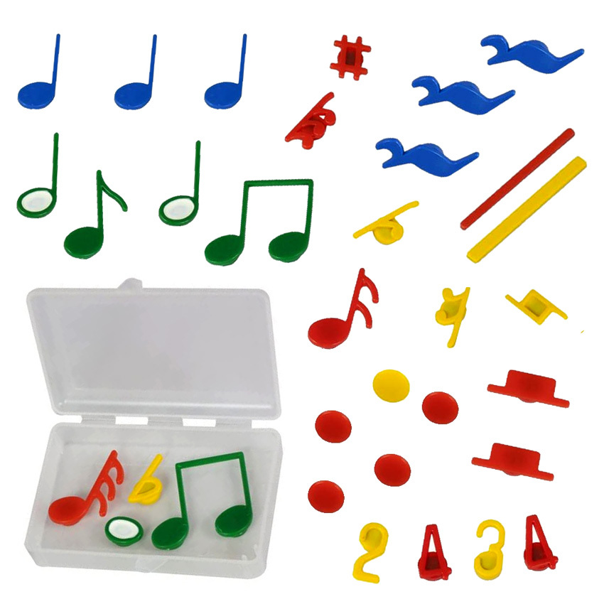 This essential music teachers' tool is ideal for young children learning about musical notation & rhythm and comes with 33 magnetic coloured notes, rests, bar lines and time signatures. The board has two music staves with clefs printed, to save you drawing them again and again. The magnets are stored in a plastic container and the board and container come in a zip-lock bag.