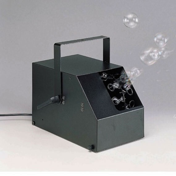 Blow 'em away with bubbles! Our high output LIBBL1 (large type) Bubble Machine creates an effect that will add excitement to any show! Small and lightweight, it features a hanging bracket and convenient front fluid tank. (Fluid not included).