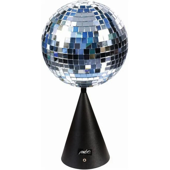 This 8" glass mirror ball can be set on a table, eliminating the problem some mobiles have of trying to hang a mirror ball. Battery powered motor, 1 x D-cell battery (not included).