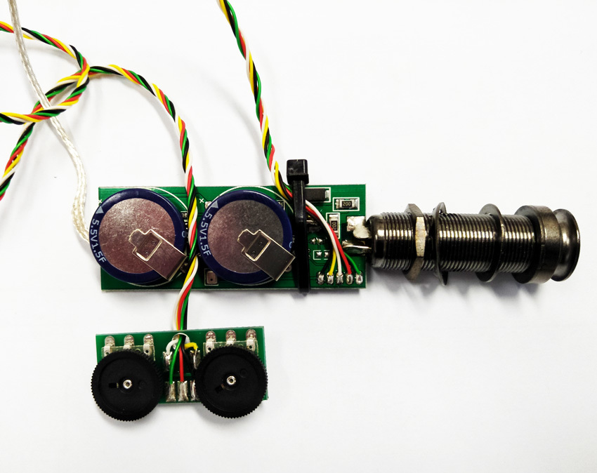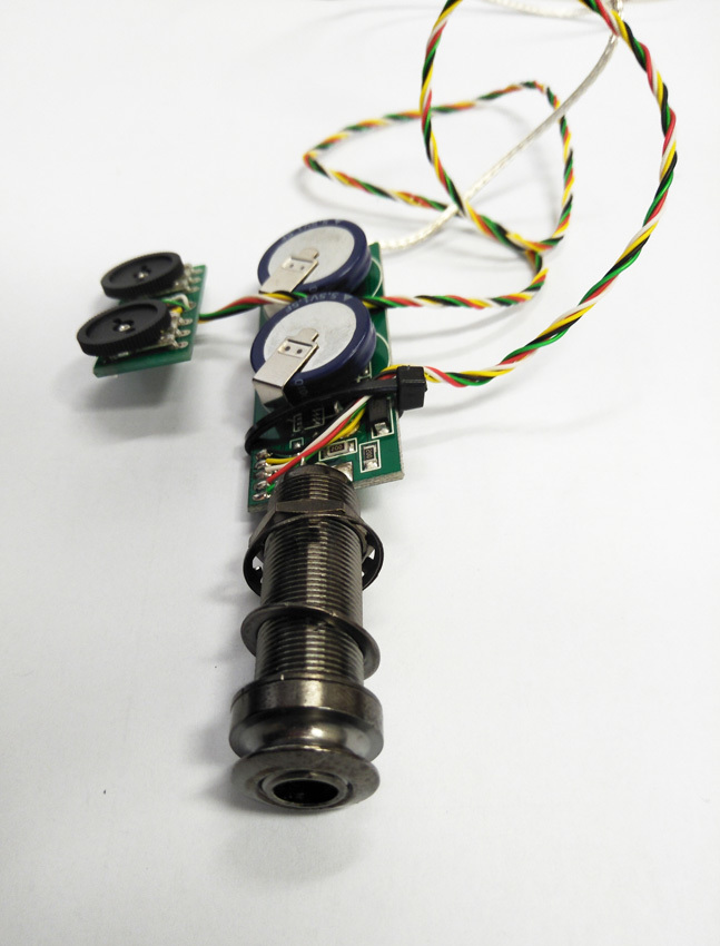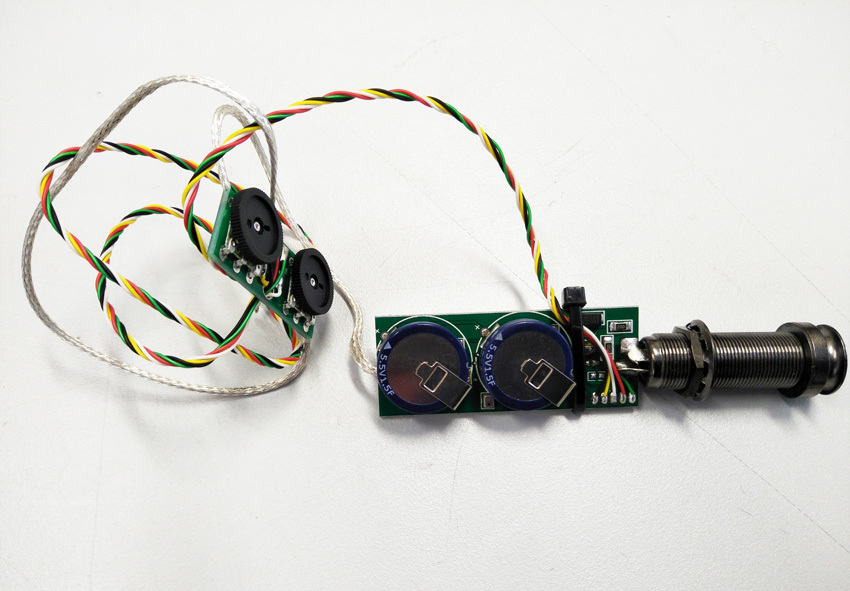 The Mi-Si Acoustic Trio Air is a winning combination of the venerable Acoustic Trio undersaddle pickup system with Mi-Si's all new MEMS microphone based Mi-Si Air. The Acoustic Trio Air system includes the LR Baggs Element undersaddle pickup, the Crystal battery-free endpin jack preamp, and the integrated MEMS microphone.