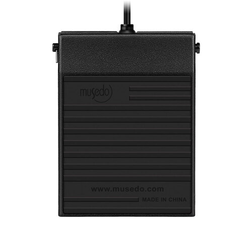 The Musedo TB-004 Sustain Pedal is designed with a metal housing and non-slip rubber surface. It has a polarity switch and is compatible with all electronic keyboards and digital pianos or other instruments requiring a foot pedal.