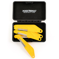The industrial, even diamond coating cuts all nut or saddle materials such as nylon, bone, graphite & even metals such as brass & zinc. We added an ergonomic handle for total comfort & control of your cut, or you can remove the blade from the handle as an alternative cutting option. This custom set comes with 6 x Nut File sizes for Electric Guitar - Light/Medium Strings. We even include a compact, strong aluminum case. That's Music Nomad quality - raising the bar in equipment care.