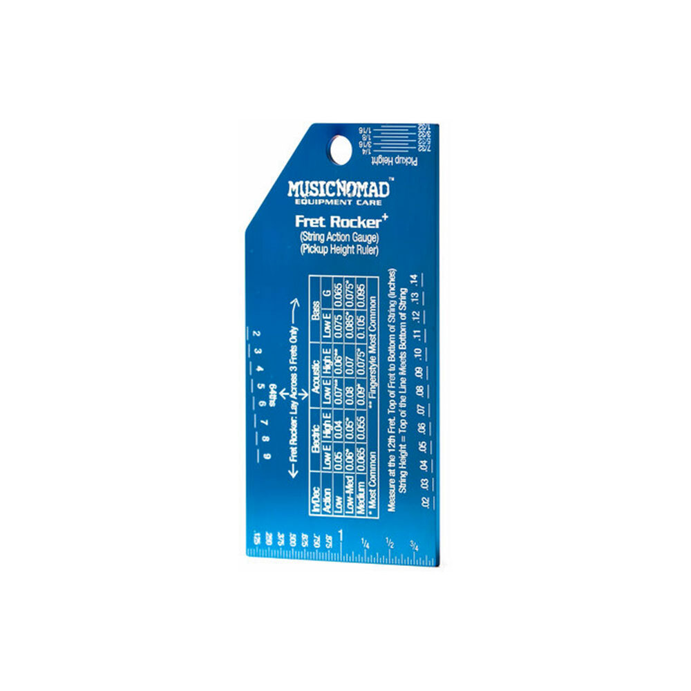 More than just a Fret Rocker, we include an accurate String Action Gauge and Pickup Height Ruler in inches, metric and 64ths that are easy to read with our innovative blue finish and deep etched white markings. Our convenient chart on proper height by instrument type & measurement instructions takes out the guesswork. The Pickup Ruler helps you dial in your sound even more.