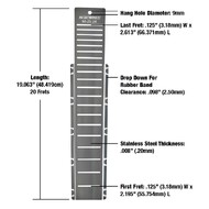 Our high quality stainless steel is the perfect thickness at .008" (.20mm), uses a precision manufacturing process free of burrs, and leaves all edges smooth and rounded. Our innovative formed drop-down edges allow the rubber bands we include to hold the Fret Shield in place securely and keep the bands below the top surface to avoid damaging them during the polishing process.