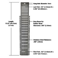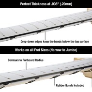 Our high quality stainless steel is the perfect thickness at .008" (.20mm), uses a precision manufacturing process free of burrs, and leaves all edges smooth and rounded. Our innovative formed drop-down edges allow the rubber bands we include to hold the Fret Shield in place securely and keep the bands below the top surface to avoid damaging them during the polishing process.