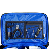 The rugged, weather-resistant exterior features 1200D recycled polyester (rPET) made from recycled water bottles. No detail is overlooked, including 15 sidewall storage compartments all easy to see and access, plus straps to store your work mat, guitar stand and cables. Additional features include an impressive 36 liters of total storage, high quality external zippers, 1/2" padded construction on all sides to protect your gear, thick air mesh comfort shoulder and hand straps, and a moveable padded divider partition. Load it up and take it wherever you go, the studio, home, shop, gig and rehearsal.