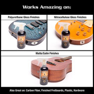 Our special formulation is infused with gloss enhancers & UV protectants to restore your guitar to its original showroom look. Our anti-static agents help reduce dust from binding to your guitar. Small in size but big in results you can take it everywhere, and it even smells great.