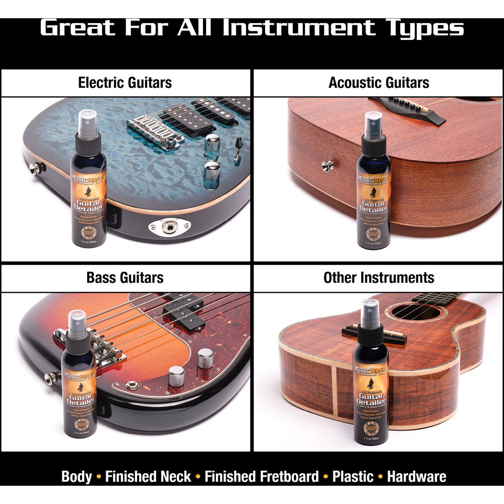 Nothing plays like a clean guitar. Music Nomad’s detailer puts everything you need to care for your guitar in one easy spray and wipe product.