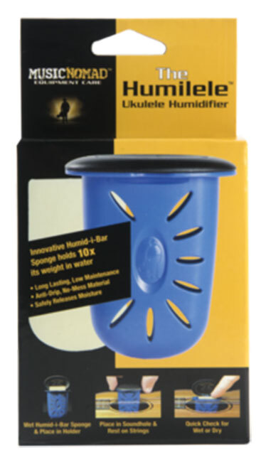 Ukulele wood needs moisture to play and look its best. Dry wood can warp, shrink and worse yet, crack! Music Nomad the leader in equipment care products, has developed an easy to use, no mess, and low maintenance Ukulele humidifier. The Humilele rests securely on top of the strings to safely and evenly hydrate your Ukulele to avoid these problems.