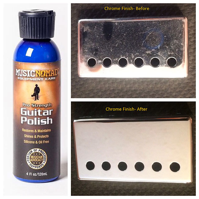 Our special polish formulation even removes oxidation and restores a brilliant shine to your guitar hardware (frets, pickups).