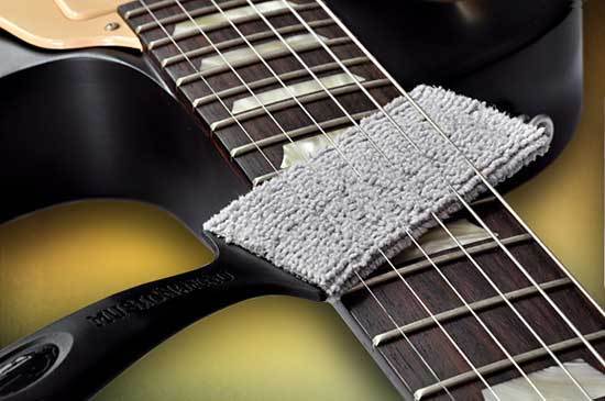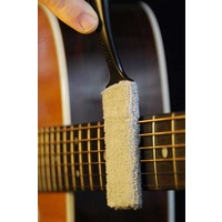 The premium quality washable microfiber pad cleans on top AND underneath guitar strings in seconds. The 100% lint free microfiber pad protects frets and fretboard from getting damaged while at the same time cleaning them. Also, the microfiber pad quickly cleans dust, grime and fingerprints on the instrument's body and hard to reach areas.