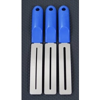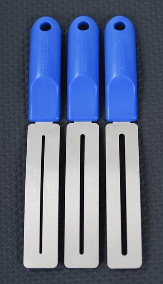 The premium fretboard guards are made using a high precision process that produces a very smooth finish on our high quality stainless steel material, which is nonmagnetic, corrosion resistant and heat resistant. The special engineered curved angle contours to all fretboards. The innovative ergonomic handle makes any fret job easier, quicker, and keeps your fingers from getting in the way.