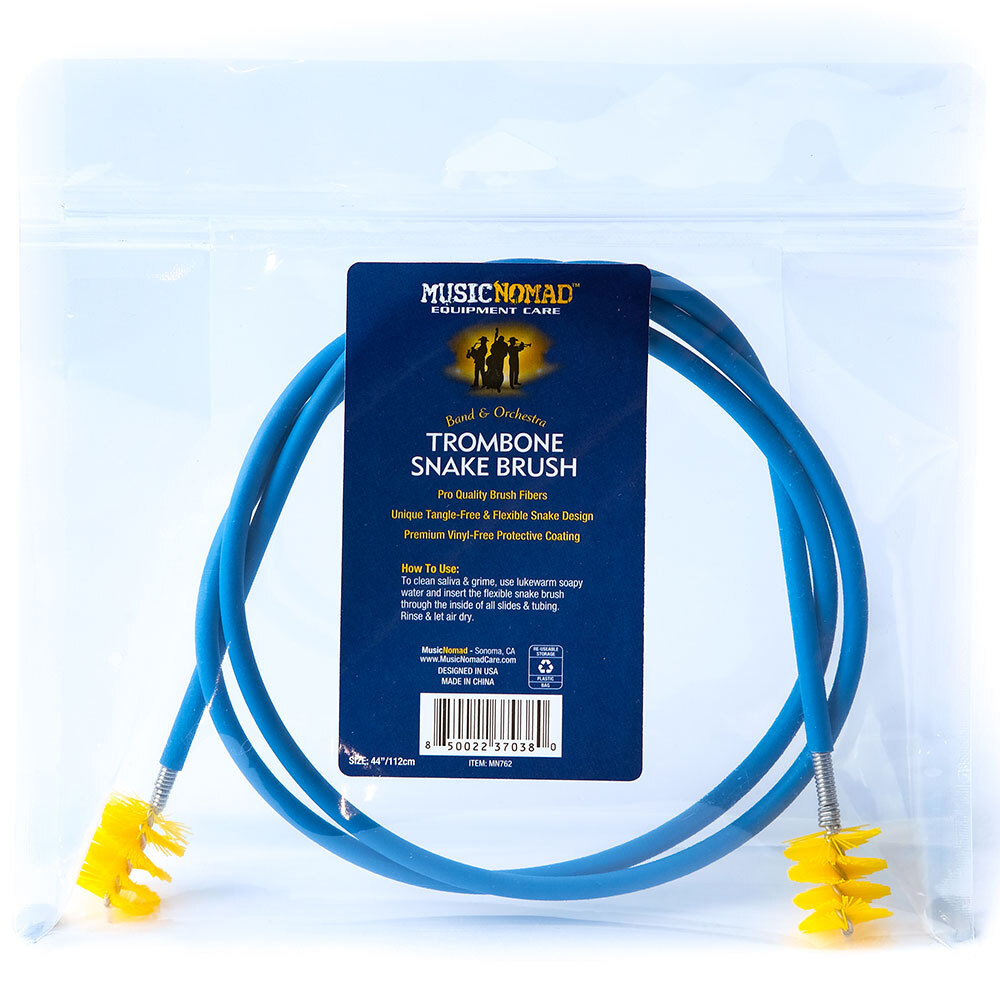 Music Nomad has set a whole new higher standard for what you should expect when you buy a trombone snake cleaning brush. Our 112cm (44") unique tangle-free & flexible design uncoils straight making cleaning a breeze.