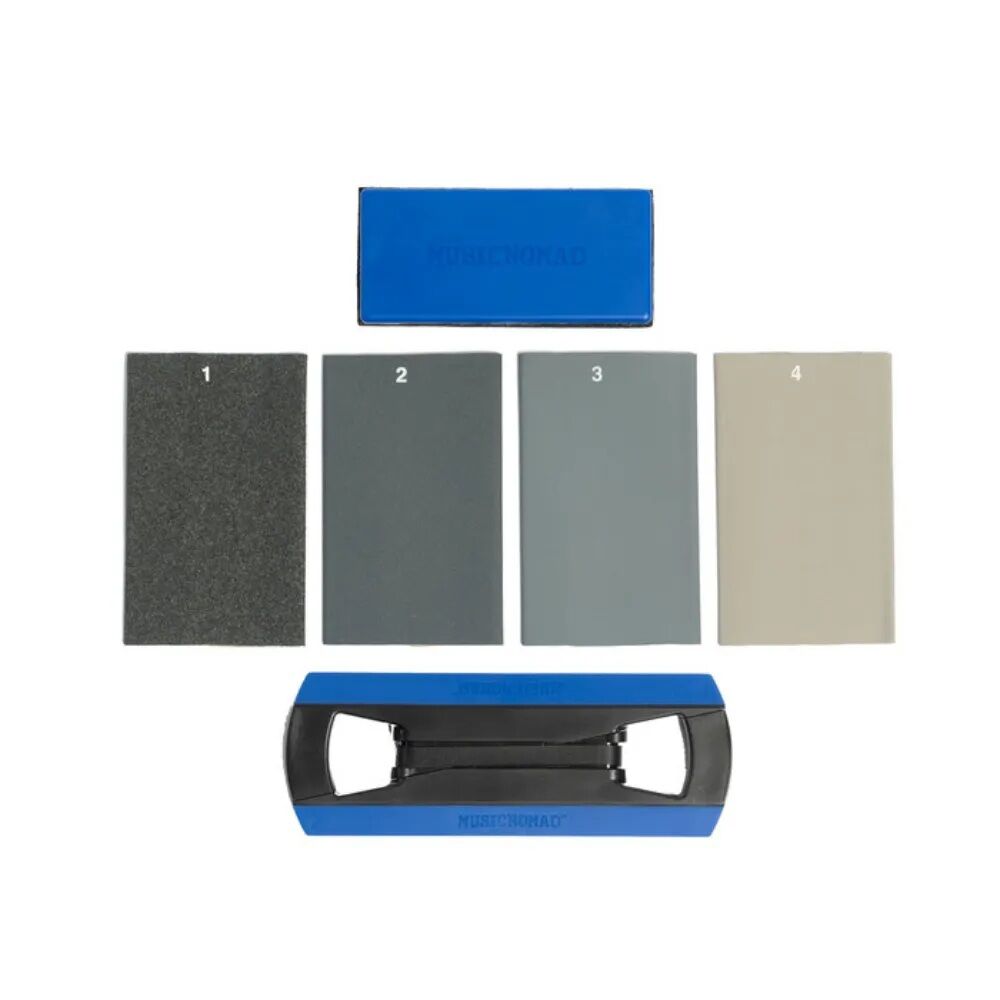 Stop fumbling around with polishing paper or fret eraser blocks. When it's time for the final touch after a Fret Crowning, Beveling or Dressing, Music Nomad's Tracers Fret Finishing Kit has everything you need to polish out your frets to a smooth, mirror shine.