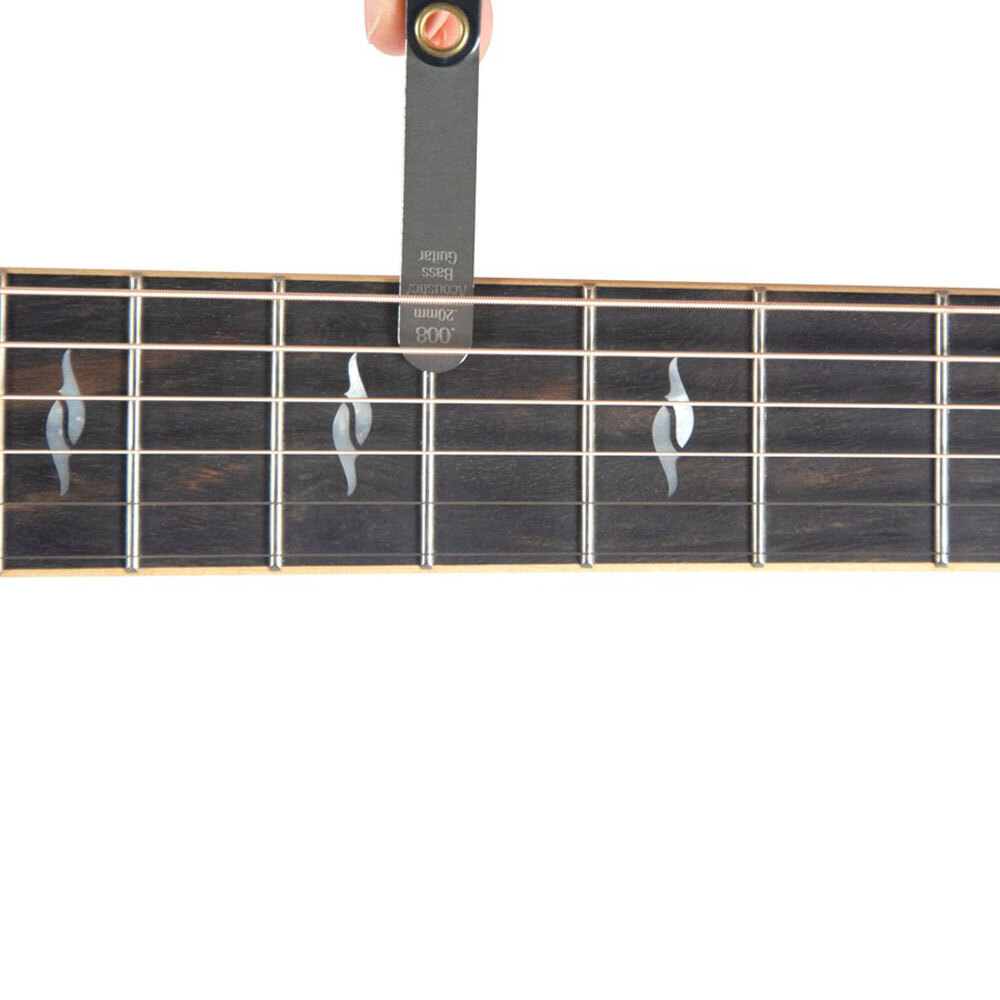 - Precision Stainless Steel Gauge Includes the 3 Most Common Truss Rod Neck Relief Measurements (.006", .008", .010") for Electric, Acoustic, Classical & Bass Guitars with Easy to Follow Instructions Printed Right on the Handle & an Innovative Pick Capo to Assist