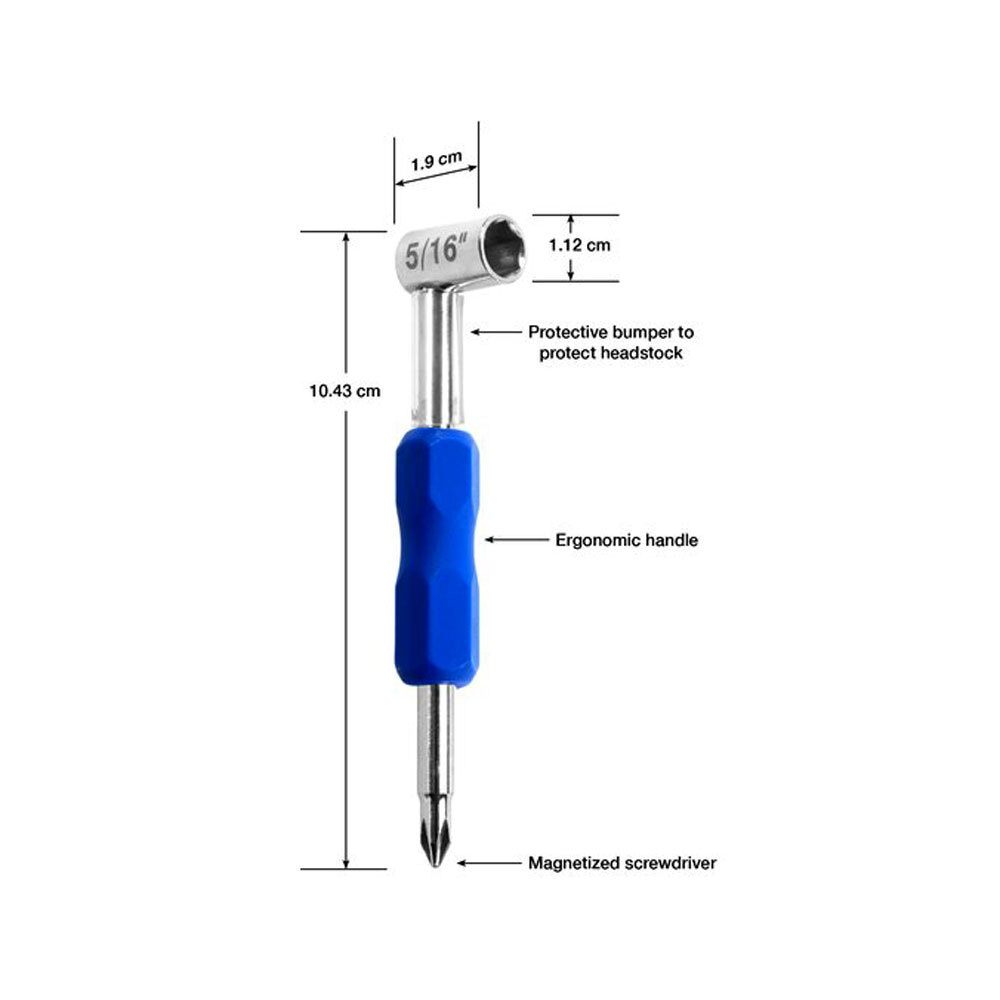 - Premium Truss Rod Wrench - 5/16" with Strong Carbon Steel Construction & Ergonomic Comfort Handle features a Magnetized Screwdriver for the Small Truss Rod Cover Screws and a Protective Bumper to Protect the Headstock