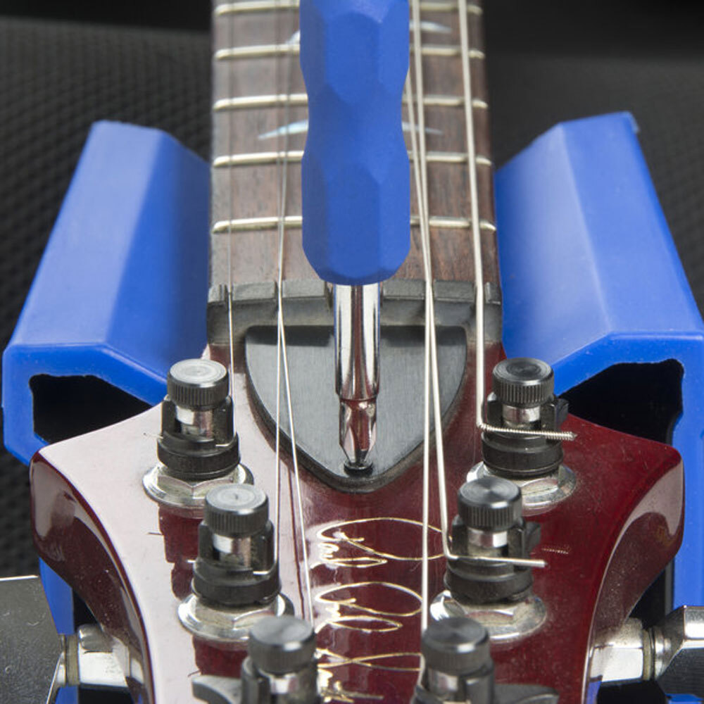 Equipped with a handy magnetic screwdriver on one end remove the tiny truss rod screws, and then turn it around and use the wrench to properly adjust your truss rod. Our ergonomic handle and rubber protective bumper gives you the comfort around your prized instrument.