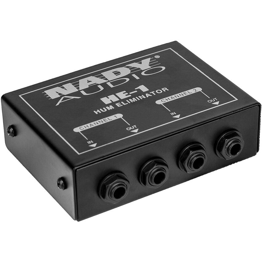 The Nady HE-1 Hum Eliminator easily eliminates AC hum (60Hz/120Hz buzz) with up to 20dB of attenuation.
