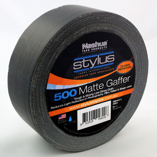 Nashua 500 Matte Gaffer is a tough & strong low gloss cloth tape. Not only does it adhere extremely strongly it has a clean removal too. This matte finish reduces light reflection in photography, film, video and stage uses.