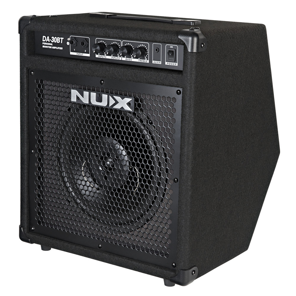 NUX DA-30BT is equipped with 30W power amplifier, a 10" full-range speaker, frequency response characteristics significantly for the frequency characteristics of the various drum instruments optimized circuit design, bright treble, tenor and full bass shock having two frequency adjustment buttons: treble, bass, provides the user with better adjustability.