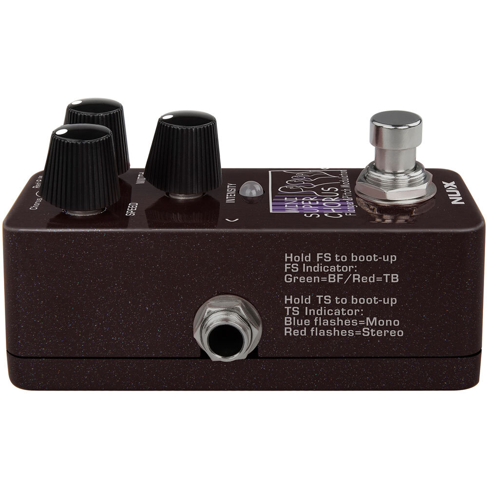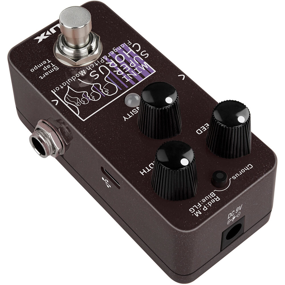 - Using DSP technology, NUX is able to offer a mini-pedal with a contrasting array of chorus tones. Besides that, mini SCF offers wider dynamic range, 9V DC power, smart tap tempo that innovates the origin and gives you more good vibes