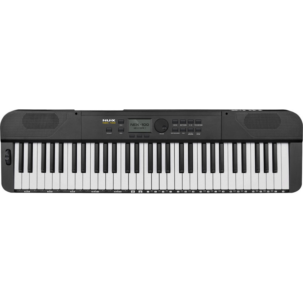 Control layout is simple and intuitive, providing quick access to all functions, with options for transpose, split or layered keyboard, touch response, pitch bend, and Bluetooth connections. The NUX NEK-100 hides a full arsenal of player options in a very portable and convenient package.