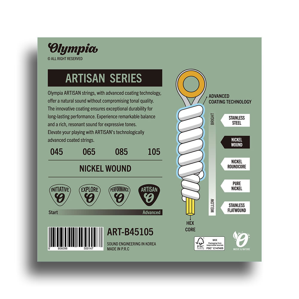 Olympia ARTISAN strings with Advanced Coating Technology, offer a natural sound without compromising tonal quality. The innovative coating ensures exceptional durability for long lasting performance. Experience remarkable balance and a rich, resonant sound for expressive tones. Elevate your playing with ARTISAN's technologically advanced coated strings.