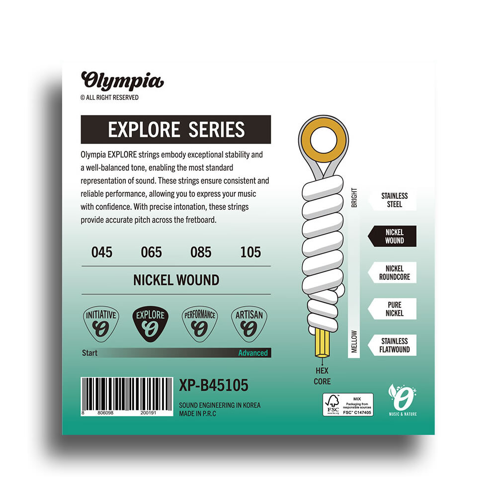 Olympia EXPLORE strings embody exceptional stability and a well-balanced tone, enabling the most standard representation of sound. These strings ensure consistent and reliable performance, allowing you to express your music with confidence. With precise intonation, these strings provide accurate pitch across the fretboard.