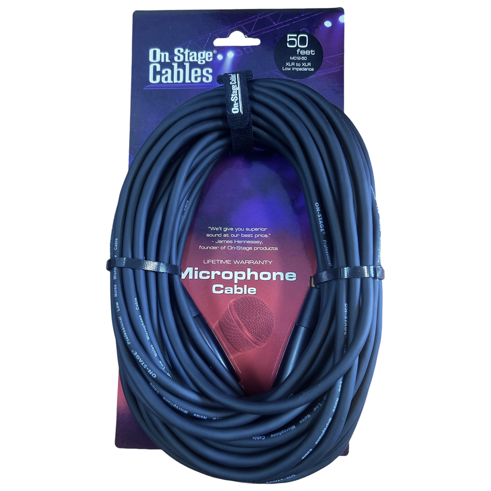 Professional balanced cables with nickel plated male XLR to female XLR connectors for durability. Available in seven popular lengths, our Lo-Z Microphone Cables are flexible, durable, and have a black jacket. Quality sound and construction that you can rely on! On-Stage Cables have the strength and durability to withstand more than everyday use.