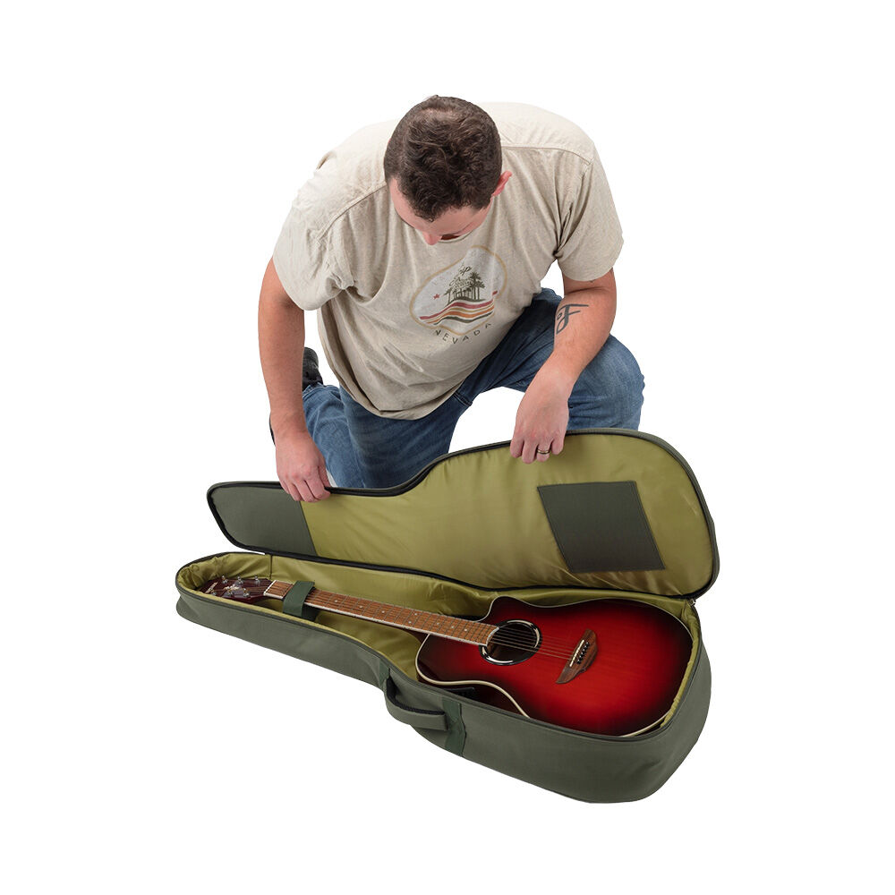 The case-like structure of the Adventure Series Gig Bag delivers robust protection, safe storage, and ease of transportation for an acoustic guitar, without the added weight of a hardshell case.