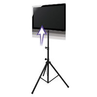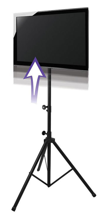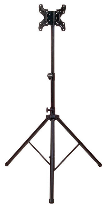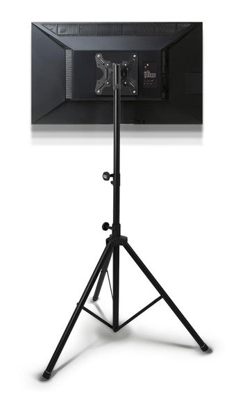 The FPS6000 is portable, lightweight, and freestanding. VESA compatibility means the FPS6000 works with any flat screen device sporting a 200 x 200 VESA mount pattern or smaller. A steel friction collar adjusts overall mount height from 47" to 74" and tilt is adjustable +/- 15 degrees, so viewing angle can be tailored to any space. For safety, the center shaft is marked at the exact position where the tripod leg housing creates the optimal 45-degree angle for the legs. These aluminum legs work with the steel center shaft to blend light-weight and strength for a truly portable yet sturdy stand.