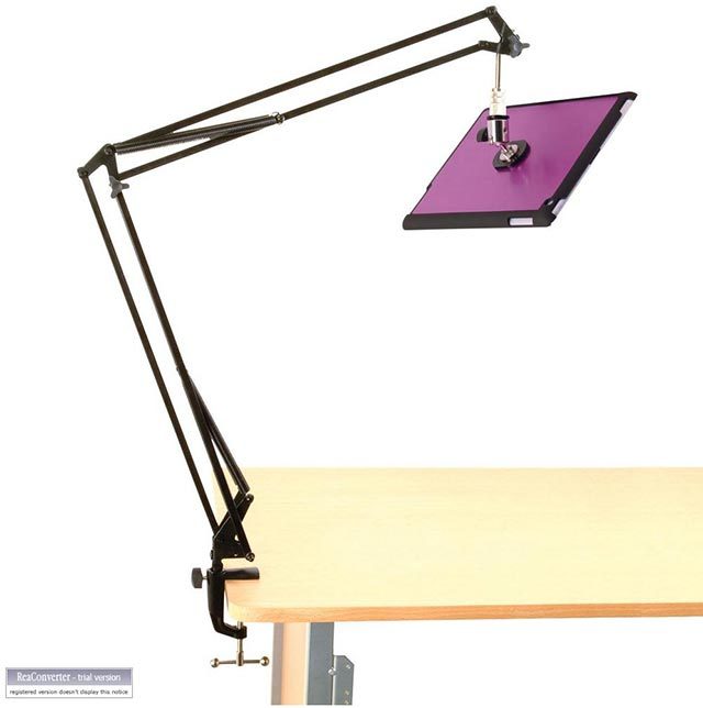 Additionally, the MBS5000 comes with two mounting options. One is a removable C-clamp capable of grasping desktops and other surfaces up to 2" thick. The other is a screw-in flange mount for permanent desktop or overhead installations.