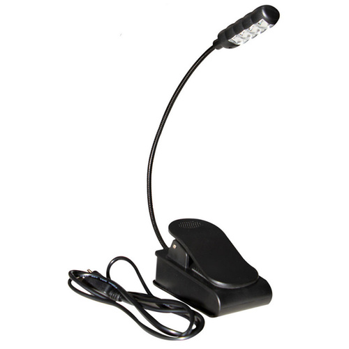 The On-Stage LED2214 Single Head USB Rechargeable Clip-on Sheet Music Light provides 25 full hours of high-intensity LED illumination, charges in under six hours and clips securely to almost any surface imaginable.