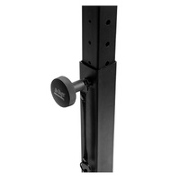 Other features include a wide stable base with non-slip rubber feet, height adjustment from 23" to 36" steel construction, and over-sized friction locking knobs with security pins.